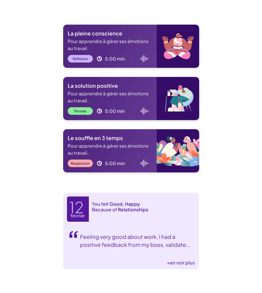 The Challenge The primary challenge is to accurately define the problem and gather relevant data at regular intervals throughout the week to foster self-awareness and personal growth. Key considerations include determining the right tone of voice, identifying essential functionalities, and deciding how frequently to engage users in the process. The Solution We proposed an application that collects information on users' emotional well-being, offers guided meditations, tools for relaxation, and encourages journaling as part of a holistic experience. This platform focuses on overall well-being and functions as a personal coach, free from religious affiliations. The Result This application supports users across various age groups and career stages by tracking emotional patterns and identifying stress triggers. By offering insights and personalized guidance, it helps reduce anxiety, manage stress, and promote long-term well-being, ultimately empowering users to thrive both personally and professionally.